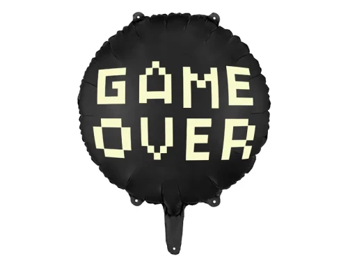 Balon foliowy Game over w kolorze czarnym z napisem w kolorze beżowym wraz z napełnieniem helem.