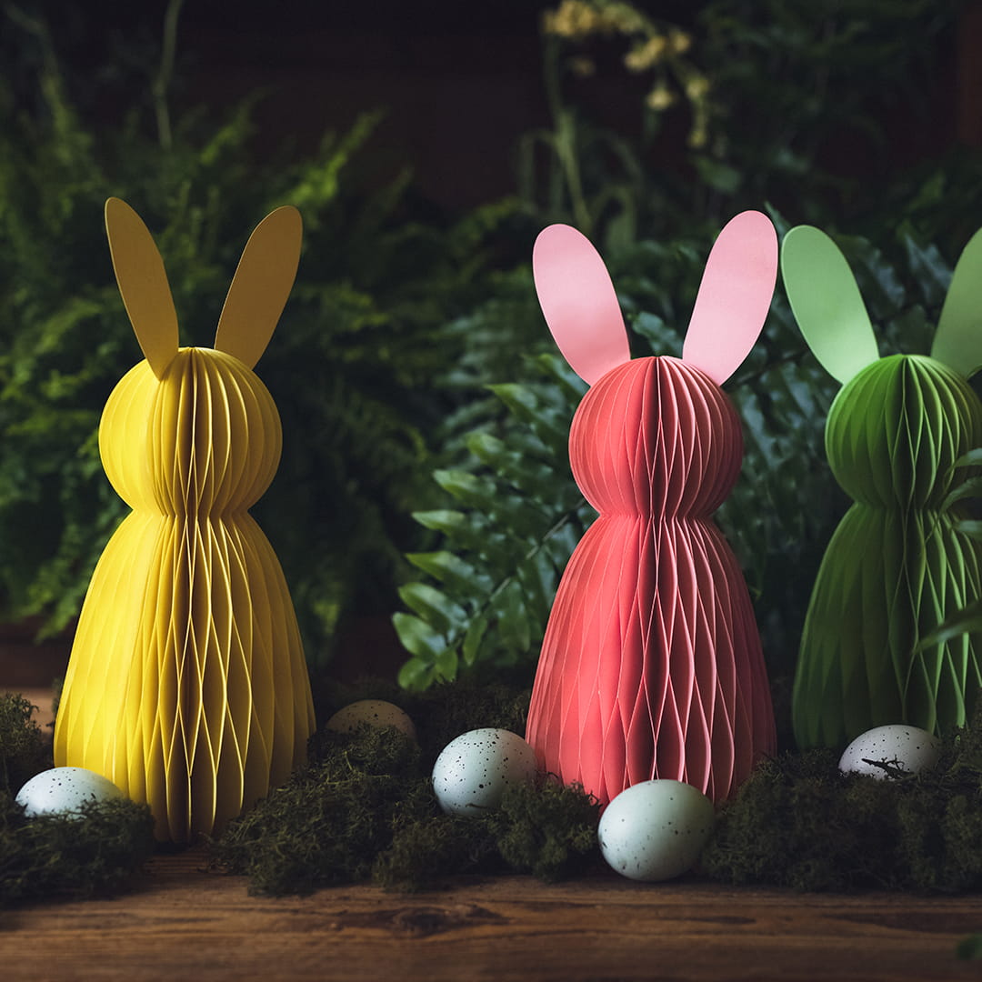 Dekoracja papierowa honeycomb Króliczek w kolorze różowym, wysokość ok. 30 cm.