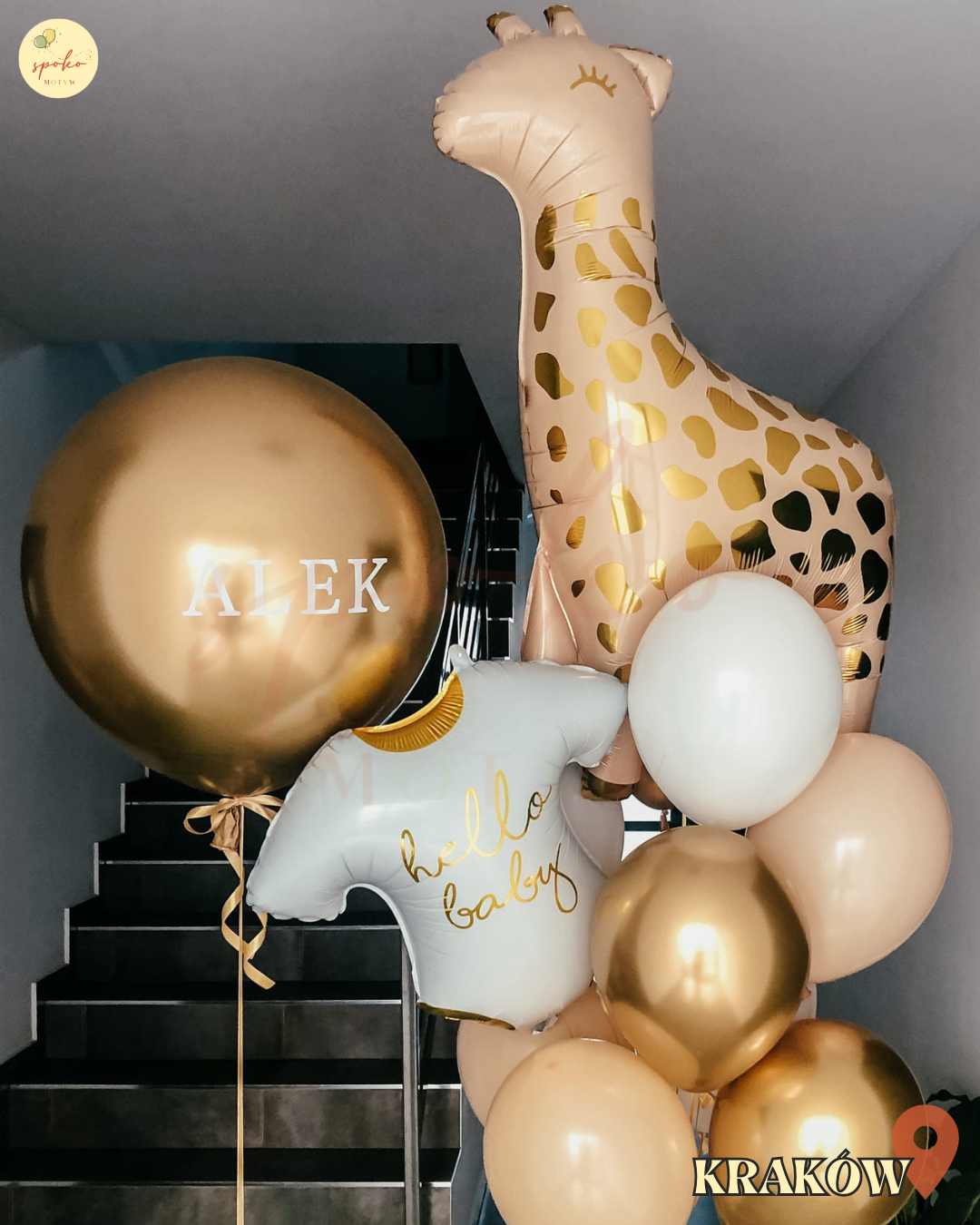 Chcesz zaskoczyć przyszłą mamę wyjątkową dekoracją z okazji baby shower? A może szukasz prezentu na powitanie maluszka w domu? Zamów nasz personalizowany zestaw balonów z helem! Balonowy bukiet z żyrafką w neutralnych kolorach i personalizowaną kulę z helem odbierzesz w naszej pracowni w Krakowie. Jeśli chcesz byśmy dostarczyli Twój bukiet pod drzwi zapraszamy do kontaktu - na pewno ustalimy dogodną porę dostawy.
