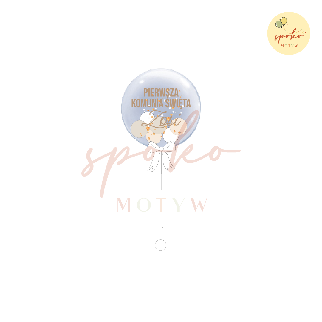 Balon Bubble z helem, Komunia, BEŻOWA ELEGANCJA (odbiór osobisty, dostawa, Kraków)