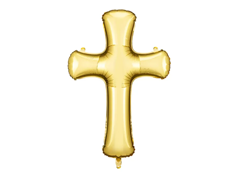 Balon foliowy Krzyż w kolorze złotym wraz z napełnieniem helem,