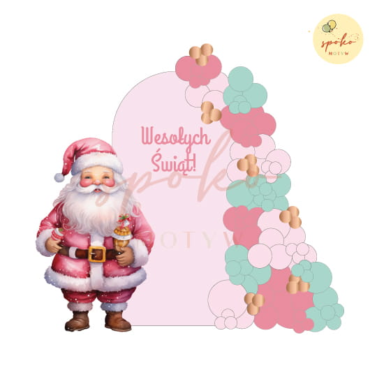 Balonowa ścianka do zdjęć, Boże Narodzenie, RÓŻOWE ŚWIĘTA z Mikołajem (montaż, Kraków)
