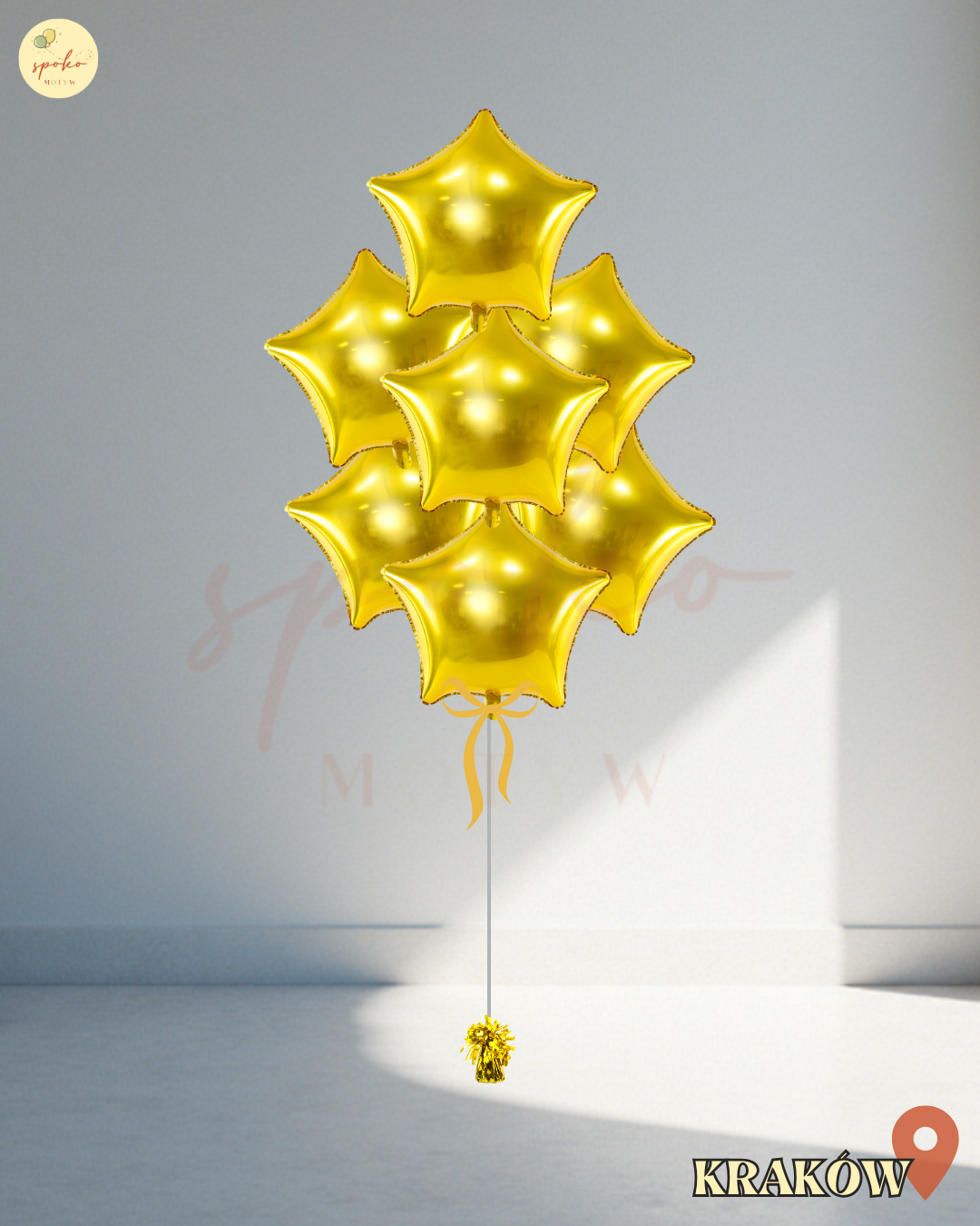 Balonowy bukiet z helem, Sylwester, GWIAZDKI GOLD, 9szt. (odbiór osobisty, dostawa, Kraków)
