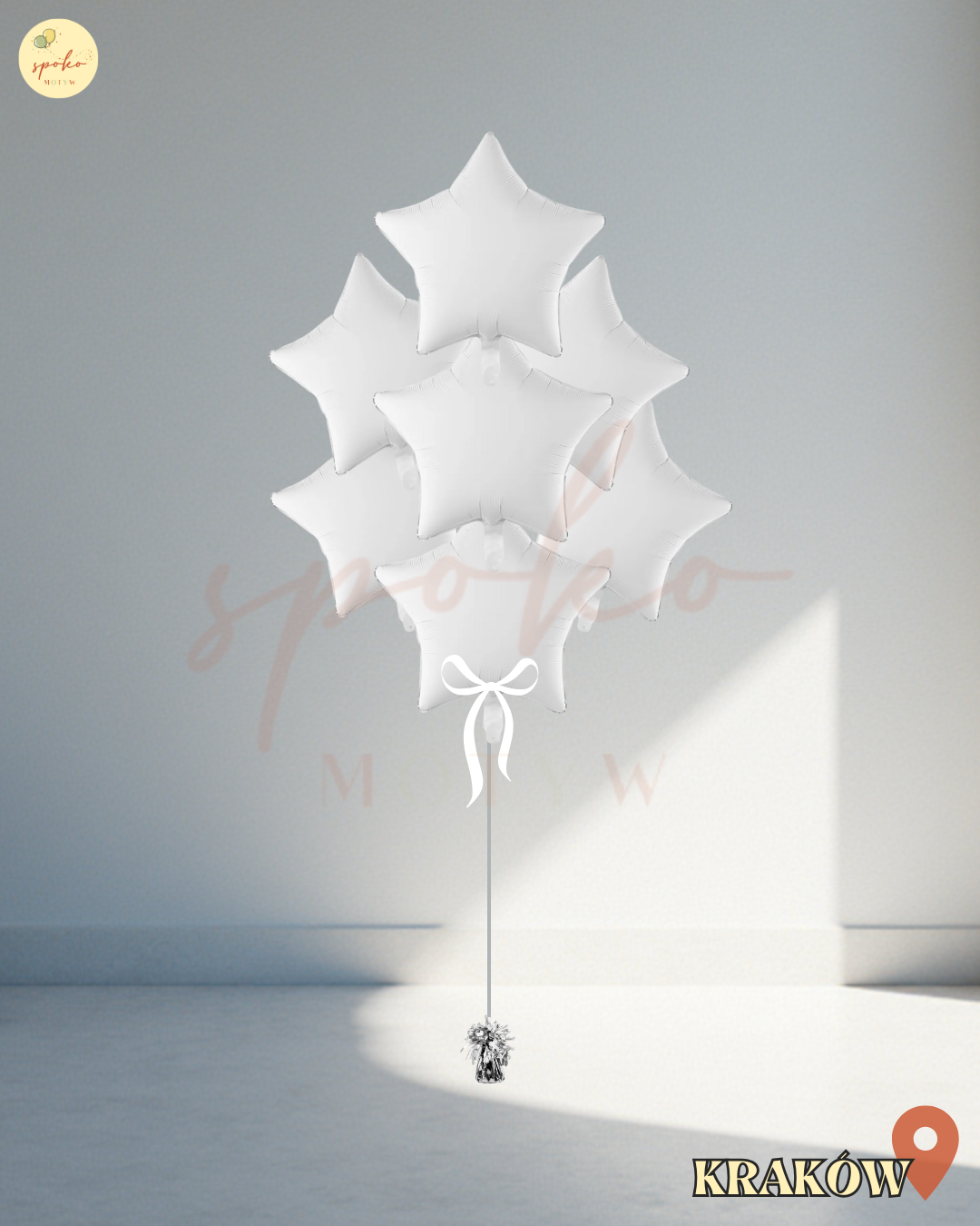 Balonowy bukiet z helem, Sylwester, GWIAZDKI WHITE, 9szt. (odbiór osobisty, dostawa, Kraków)