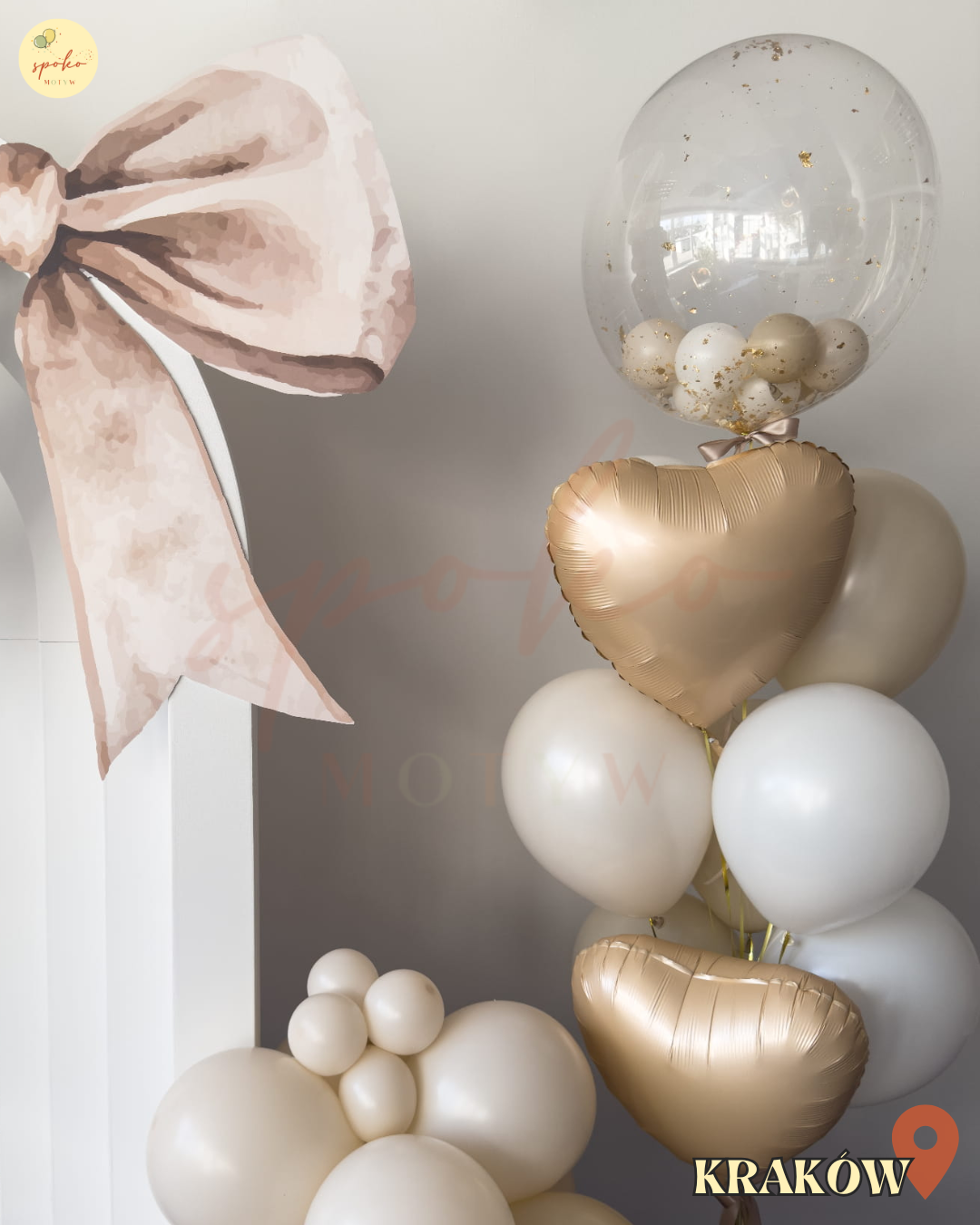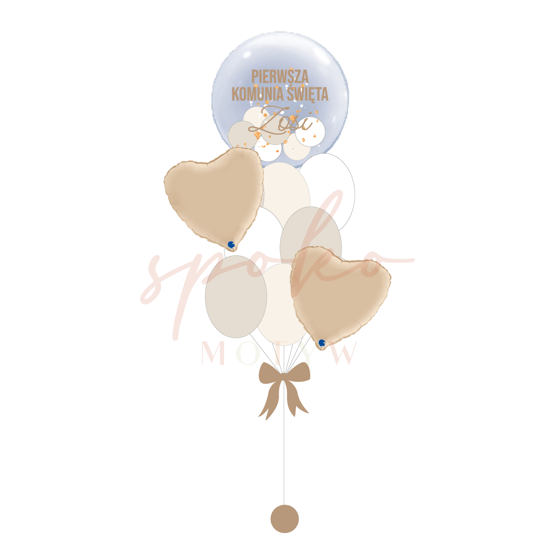 Balonowy bukiet z helem, Komunia, BEŻOWA ELEGANCJA (odbiór osobisty, dostawa, Kraków)