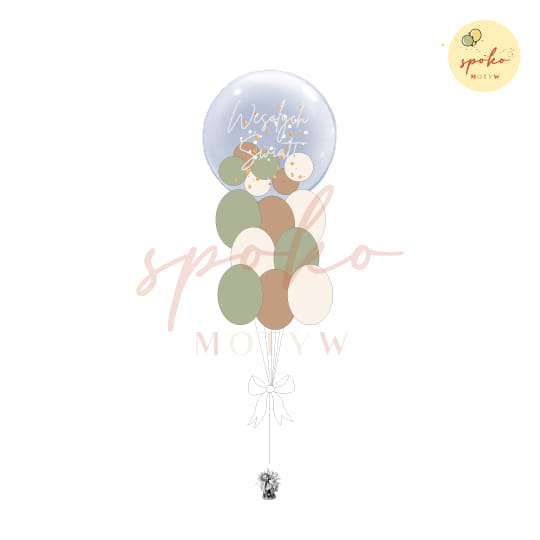 - personalizowany balon bubble wypełniony mini balonikami i płatkami złota