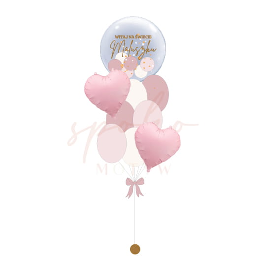 Balonowy bukiet z personalizowaną kulą bubble na POWITANIE MALUSZKA to balony z helem, które zrobią efekt WOW!