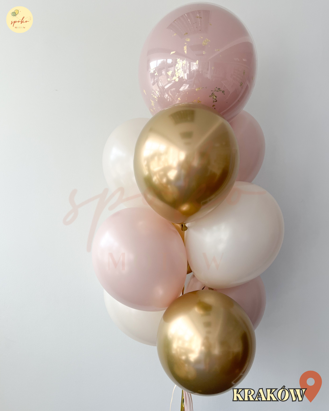 • balony lateksowe w odcieniach pudrowego różu, bieli i złota (matowe i metaliczne)