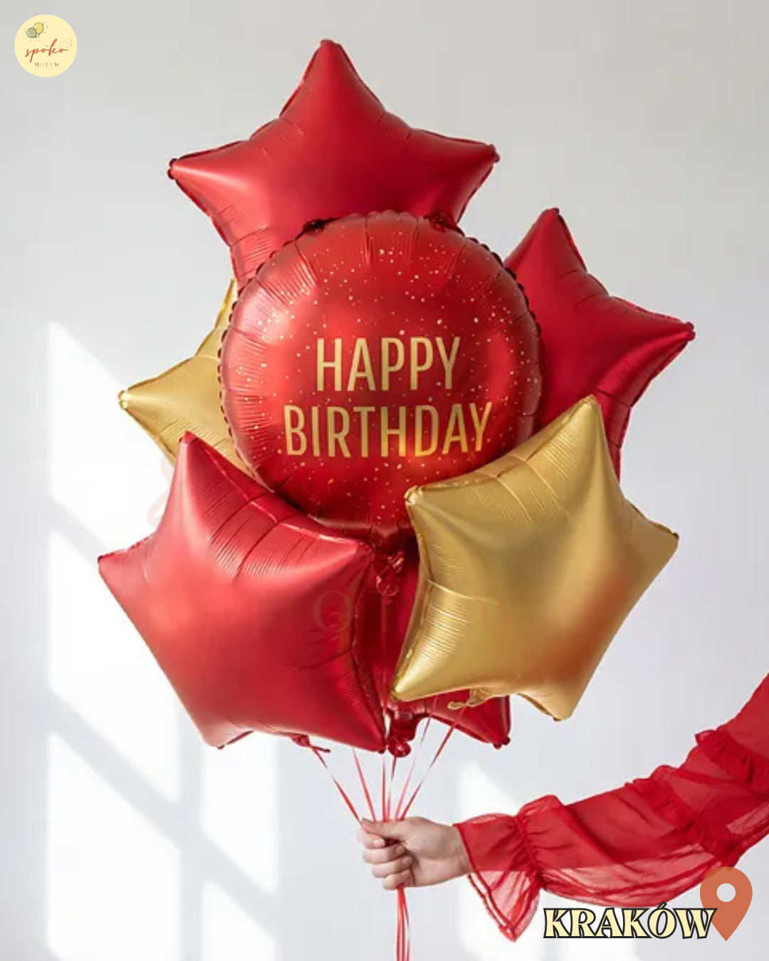 Balonowy bukiet z helem, Urodziny, RED (odbiór osobisty, dostawa, Kraków) Wybierz warianty produktu (1/5)