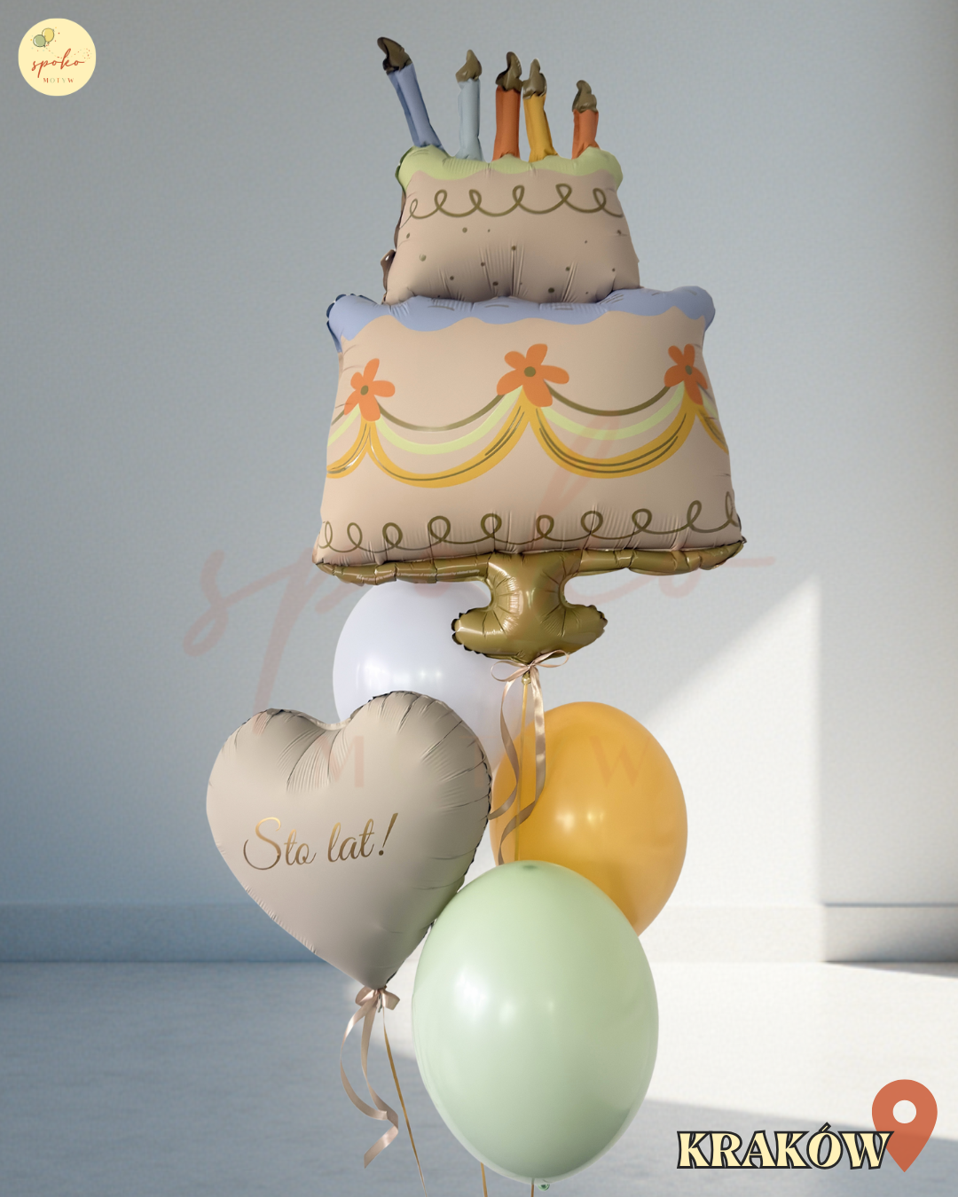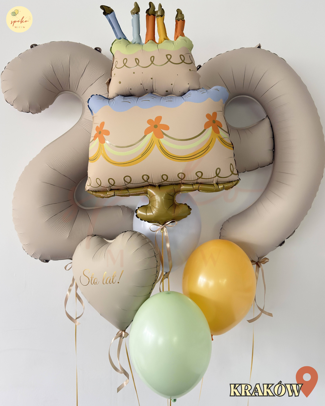 Balonowy bukiet z helem, Urodziny, TORT (odbiór osobisty, dostawa, Kraków) Wybierz warianty produktu (1/7)