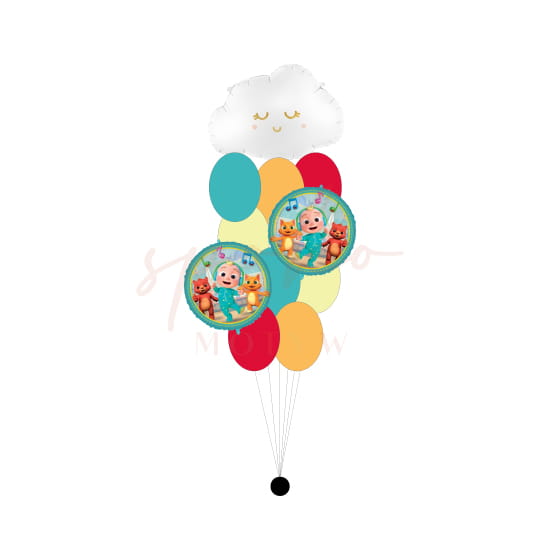 Bukiet z balonów to wyjątkowo wdzięczna dekoracja przyjęcia. Na czas imprezy ustawisz go w dowolnym miejscu. Będzie także pięknym dodatkiem do pamiątkowych zdjęć. Zestaw, który widzisz na zdjęciu będzie pasował idealnie do przyjęcia z okazji pierwszych czy drugich urodzin Twojego dziecka, które kocha Cocomelon. Bukiet z chmurką i dwoma tematycznymi balonami to świetny wybór na przyjęcie z motywem COCOMELON!