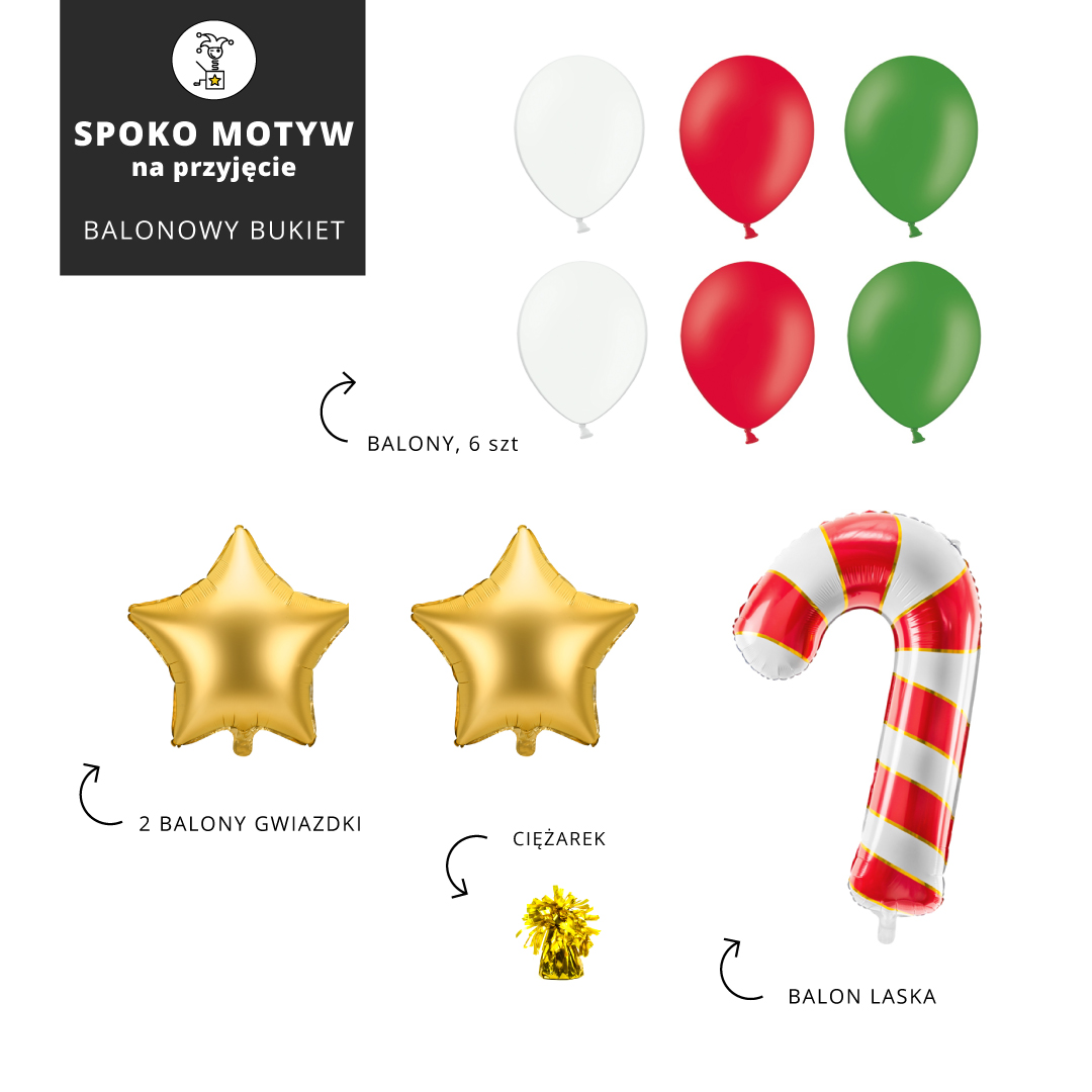 Zestaw balonów na balonowy bukiet BASIC z cukrową laską, KLASYCZNE ŚWIĘTA