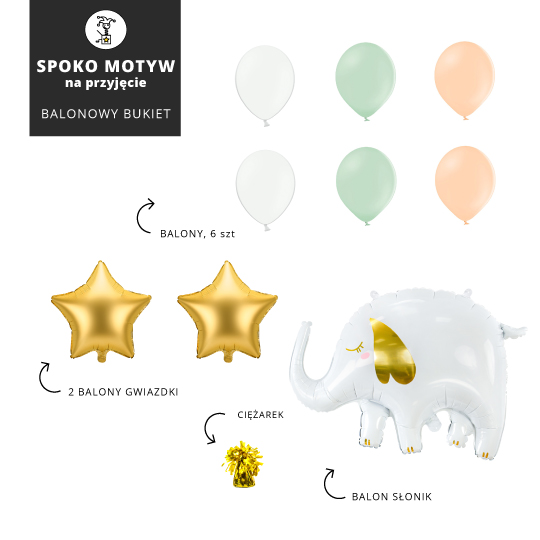 Zestaw balonów na balonowy bukiet BASIC ze słonikiem, BRZOSKWINIA & PISTACJA
