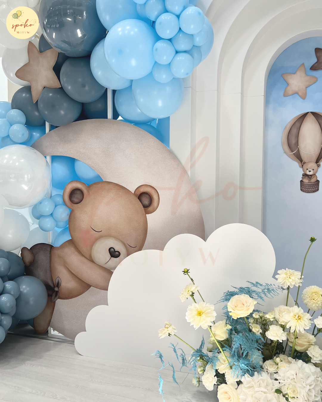 Dekoracja wielkoformatowa MIŚ NA KSIĘŻYCU – wyjątkowa ozdoba na urodziny i przyjęcia dziecięce!