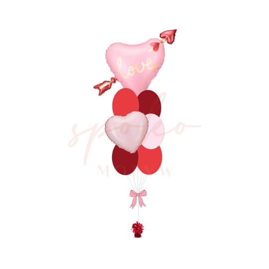 Balonowy bukiet z helem, Walentynki, SERCE ZE STRZAŁĄ (odbiór osobisty, dostawa, Kraków)