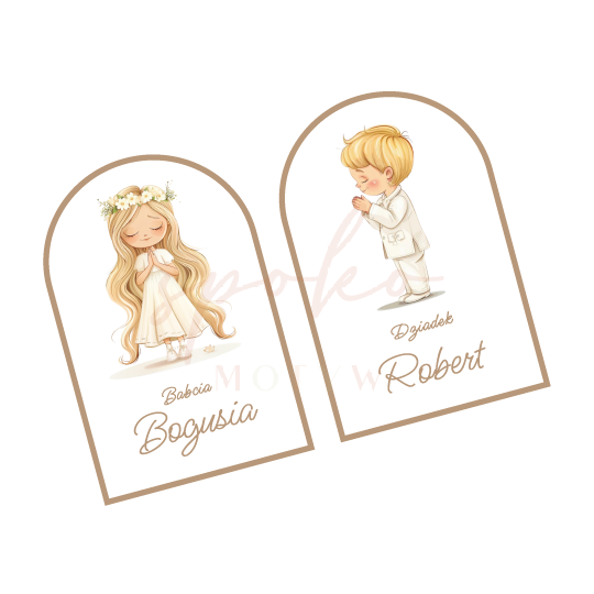 Personalizowane winietki, 6szt., BEŻOWA ELEGANCJA, Komunia