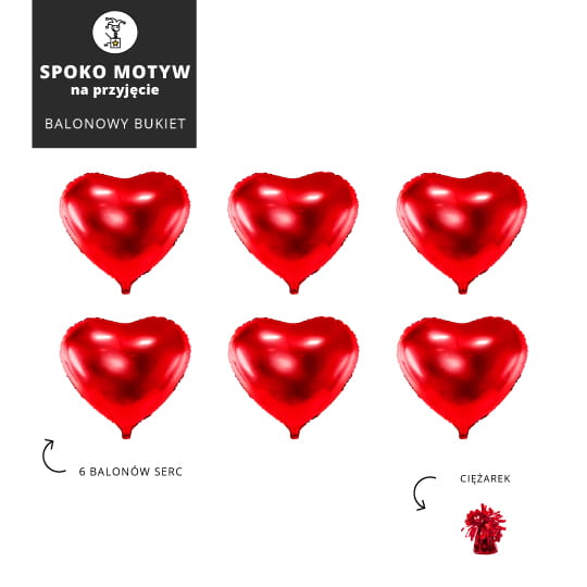 Zestaw balonów na balonowy bukiet BASIC z czerwonymi sercami, WALENTYNKI