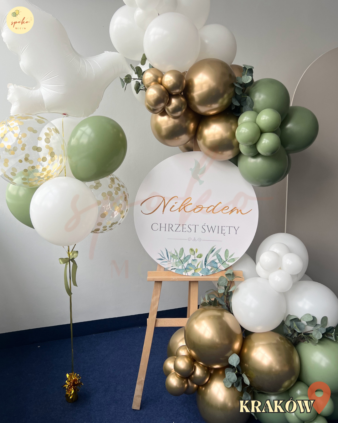 Szukasz szybkiej w rozstawieniu dekoracji na Chrzest Święty lub Pierwszą Komunię Świętą? Nasz personalizowany zestaw dekoracji z kolekcji PISTACJA & ZŁOTY to elegancka i efektowna forma dekoracji przyjęcia. Balonowa girlanda oparta o sztalugę z personalizowaną tabliczką i balonowy bukiet z gołąbkiem tworzy piękne tło do zdjęć i przyciąga uwagę gości już od pierwszych chwil uroczystości.
