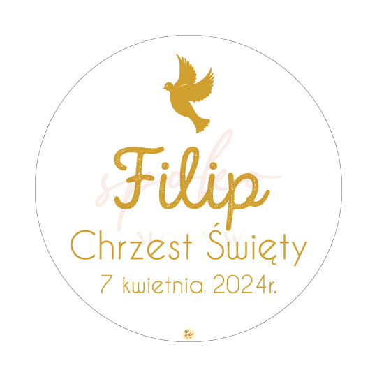 - personalizowaną, okrągłą tabliczkę z imieniem dziecka, okazją oraz datą uroczystości,