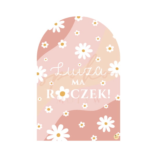 Personalizowana tabliczka na tematyczne urodziny z motywem stokrotek.