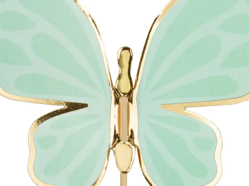 - Wymiary: Szerokość motylków ok. 9 cm, wysokość topperów od ok. 6.5 cm – odpowiednie do zdobienia tortów, ciast i deserów.