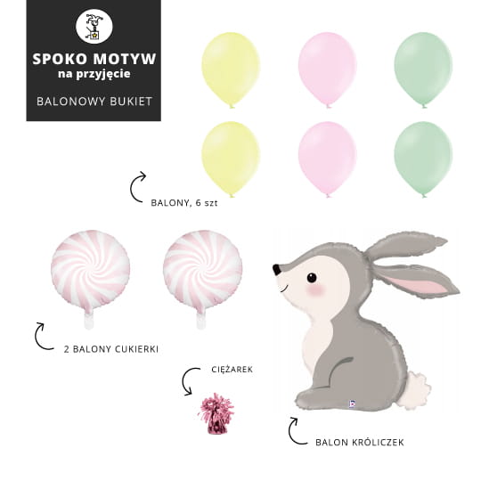 Zestaw balonów na balonowy bukiet BASIC z zajączkiem, WIELKANOC