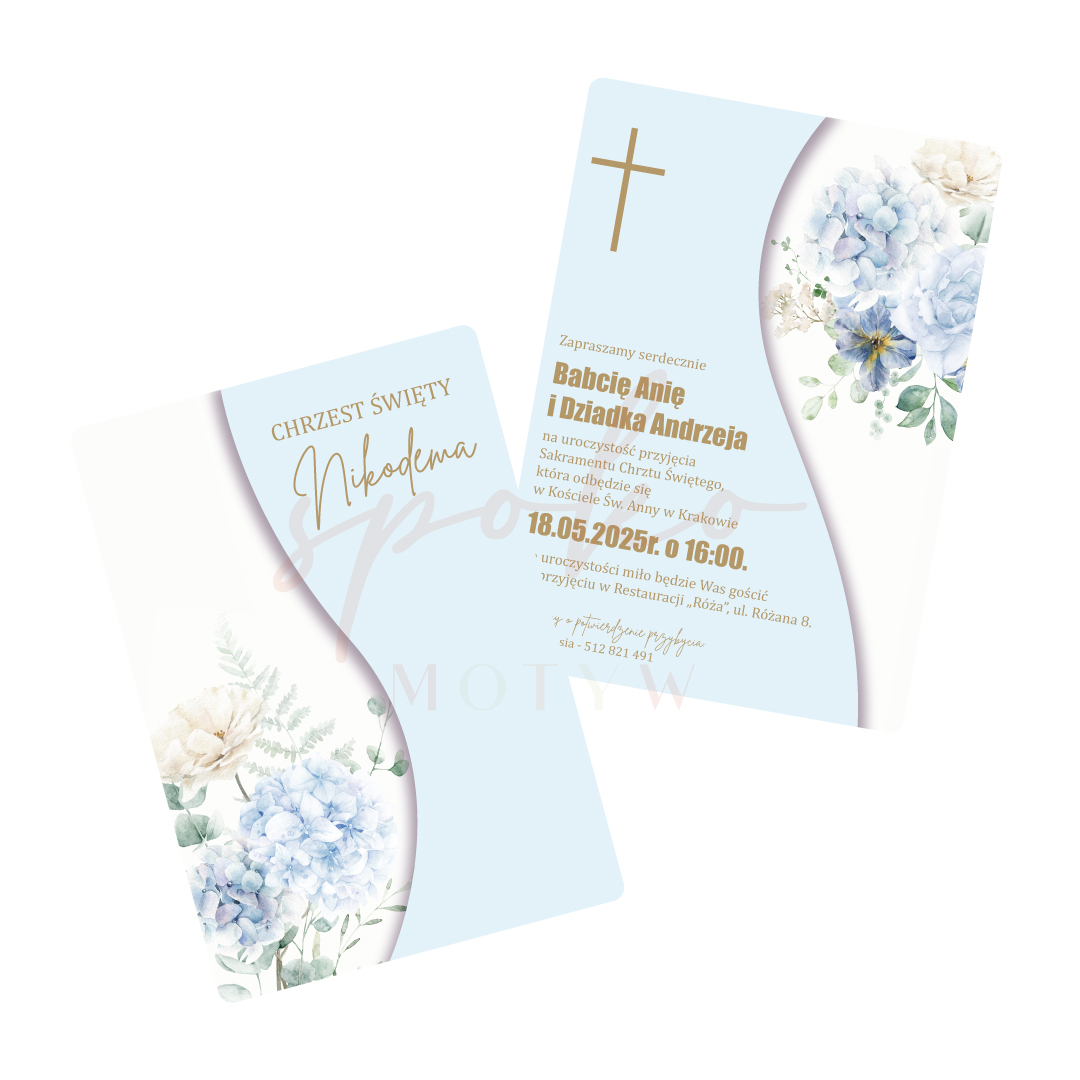 Format zaproszenia: dwustronna karta o wymiarze A5 (148x210mm / połowa kartki A4)