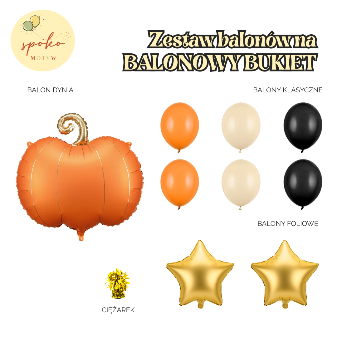 Balonowy bukiet Halloween- Dynia ze złotymi dodatkami
