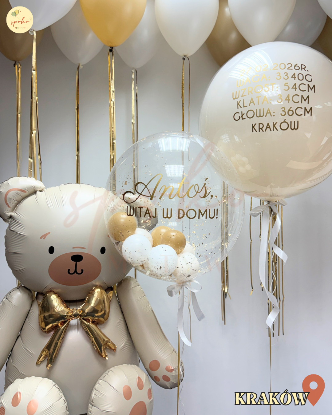 Zestaw balonów z helem, Powitanie Maluszka, BEIGE (odbiór osobisty, dostawa, Kraków)