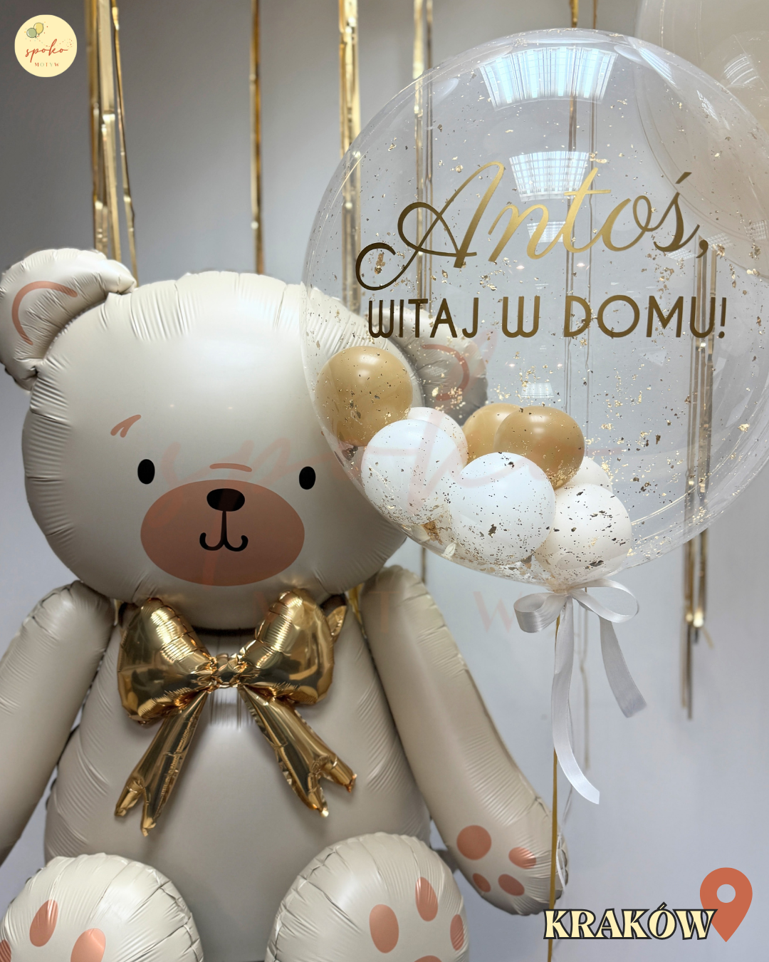 - balon stojący miś, beżowy wraz z napełnieniem powietrzem