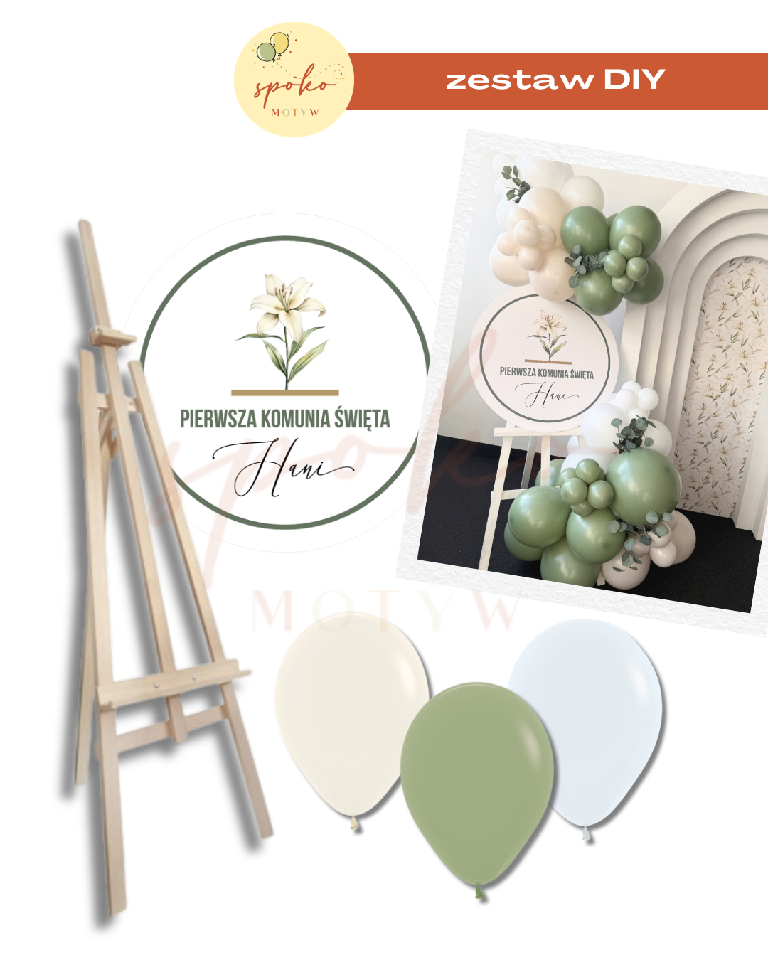 Zestaw dekoracji na sztalugę LILIA I OLIWKA, Chrzest, Komunia
