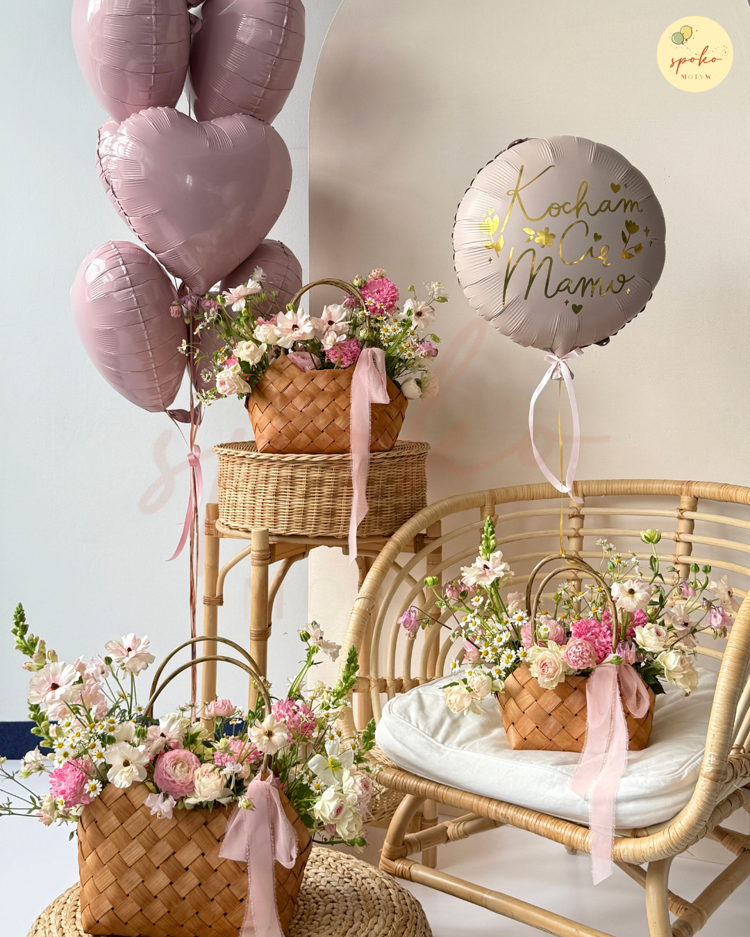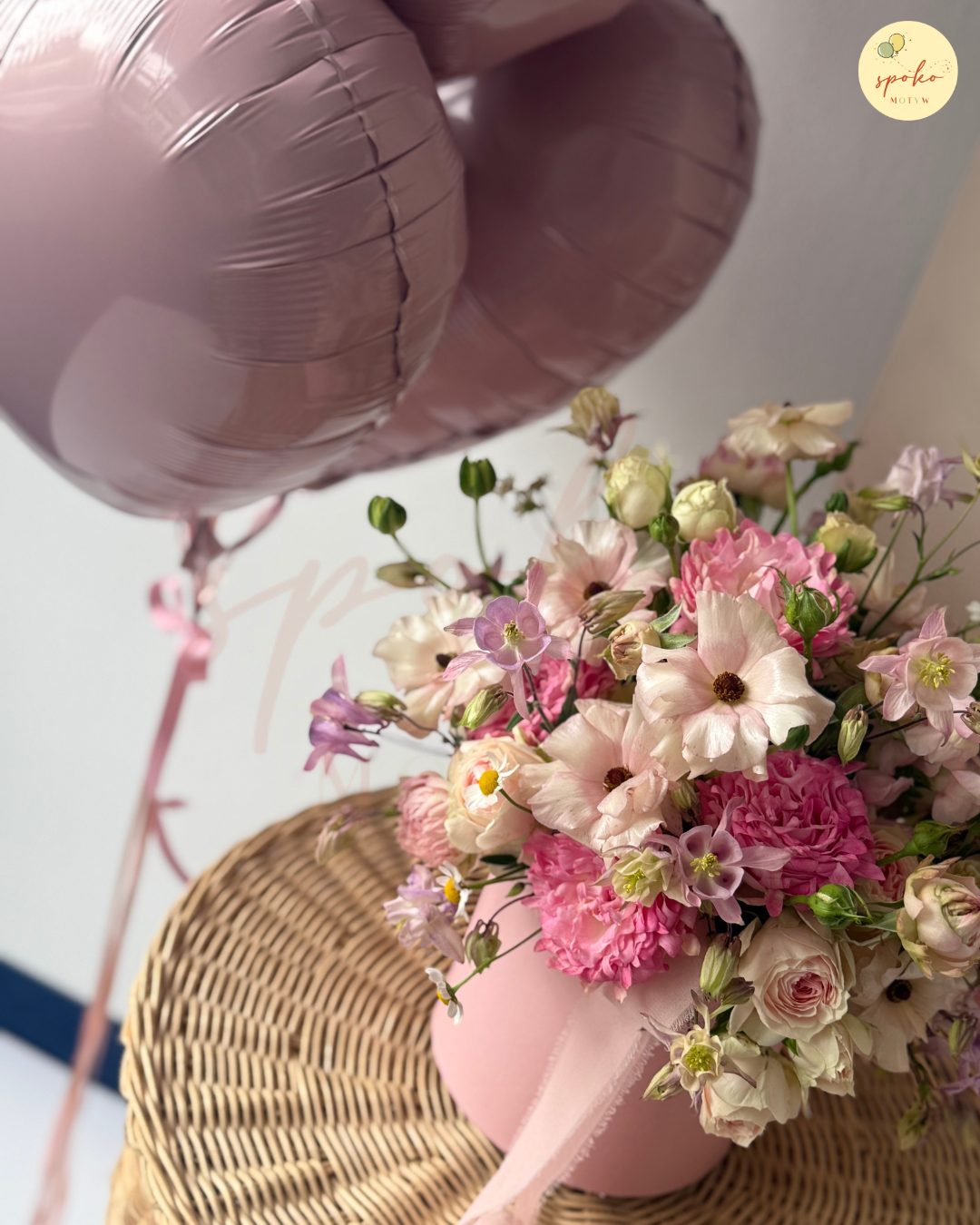 Zestaw: flowerbox M + balonowy bukiet serc DZIEŃ MATKI (odbiór osobisty, dostawa, Kraków)